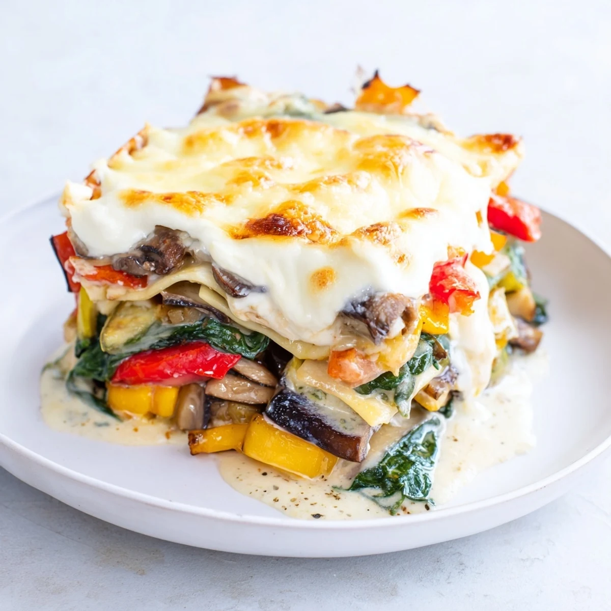 This dish combines tender roasted vegetables like eggplant, zucchini, and bell peppers with layers of smooth béchamel sauce and rich cheeses. Roasting the vegetables enhances their natural sweetness and texture. The creamy white sauce, made from butter, flour, and warm milk seasoned with nutmeg, adds a velvety touch. Layered with spinach, ricotta, mozzarella, and parmesan, then baked until golden and bubbling, this comforting dish offers a satisfying balance of flavors and textures. Perfect for a main meal with a touch of Italian flair.