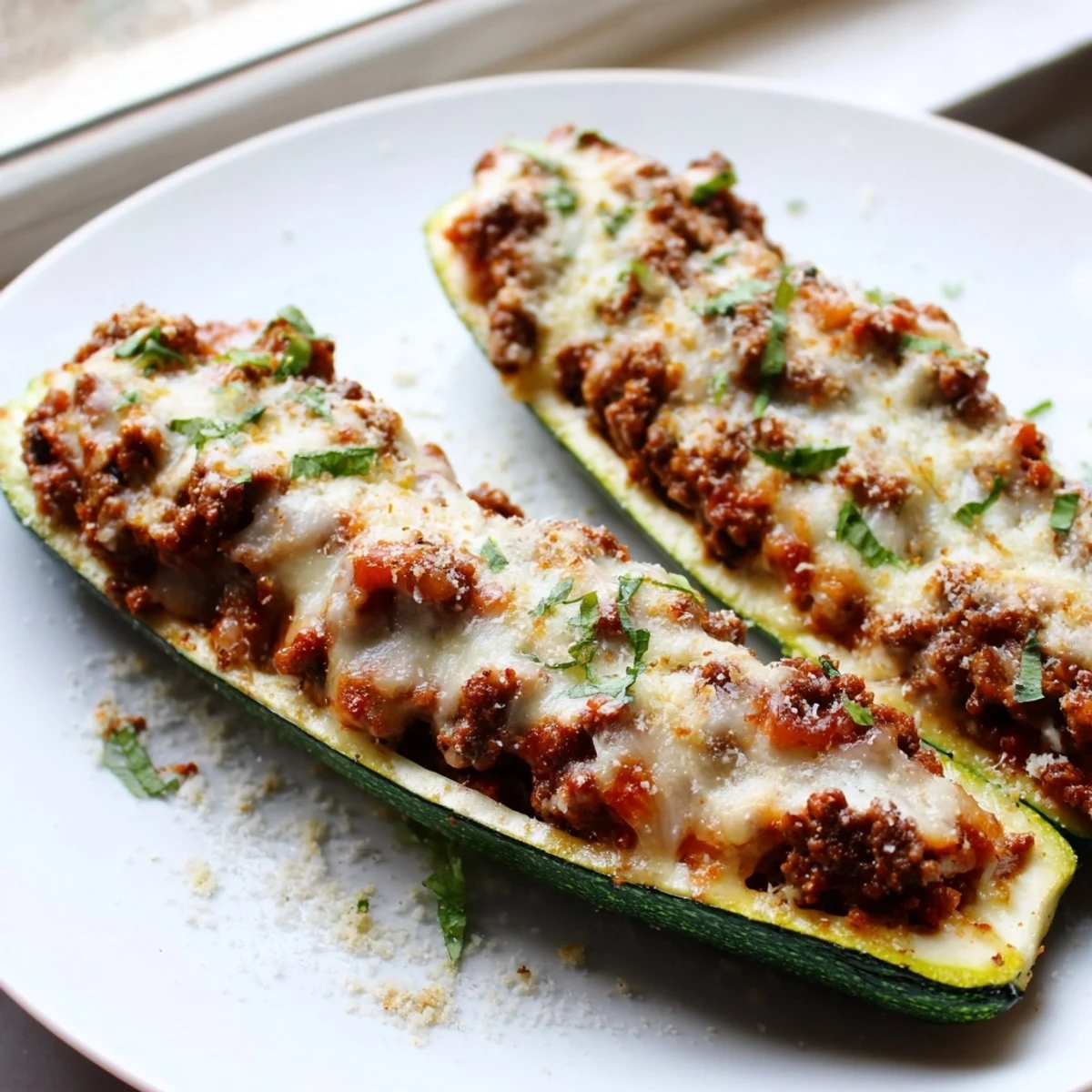 The beef mixture cooks first in a skillet to develop deep flavors, then nests inside hollowed zucchini halves for oven baking. The result is tender vegetable vessels with a hearty, cheesy center that's perfect served alongside a crisp green salad or steamed rice.