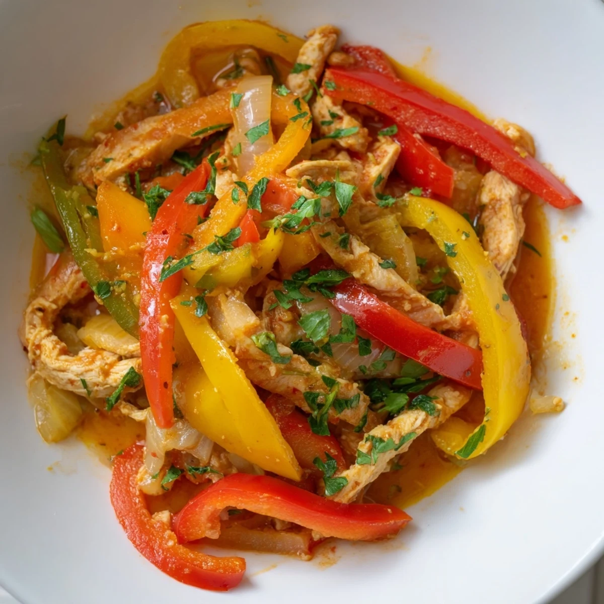 This quick and vibrant skillet combines tender turkey breast strips with a colorful mix of red, yellow, and green bell peppers. Sauteed with garlic and smoky paprika, the dish is infused with savory herbs and a splash of chicken broth to keep it juicy. A sprinkle of fresh parsley and a wedge of lemon elevate the flavors. Perfect for a healthy, gluten-free, and low-carb main course served on its own or alongside grains.
